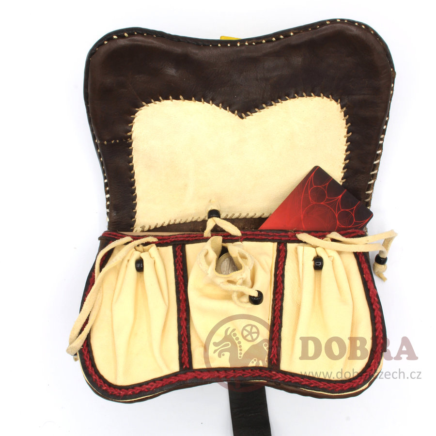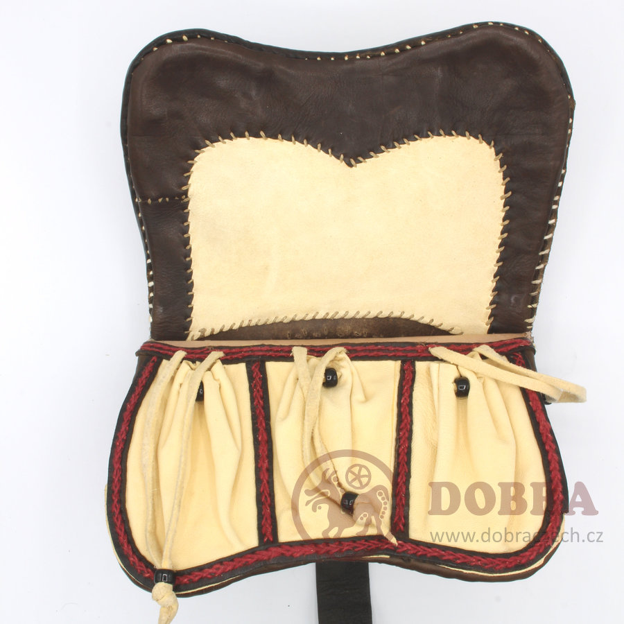Tobolka má dvě hlavní kapsy, přístupné zevnitř tobolky, na přední straně zadní kapsy ještě tři přídavné váčky na stahovací šňůrky. Na zadní straně tobolky je tak jako na originálu přídavná plochá kapsa.